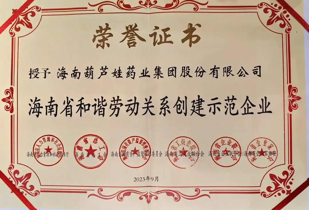 DG视讯药业集团获评“海南省和谐劳动关系创建示范企业”